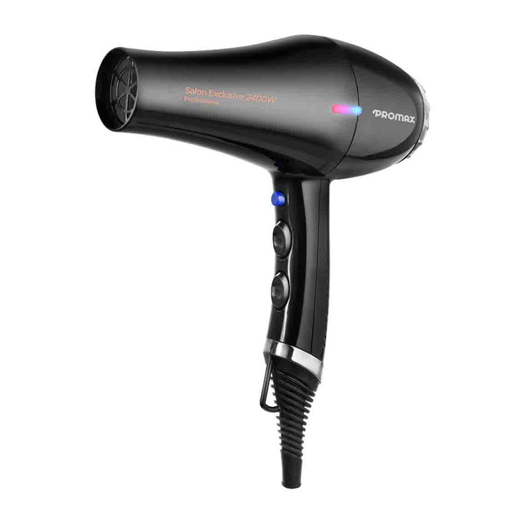 سشوار پرومکس مدل 2400T یکی از جدید ترین سشوار پرومکس است که 2400 وات قدرت حرارت دارد. این سشوار دارای قابلیت آیونیک دائم است. فناوری تولید یون باعث میشود که موها در اثر حرارت، کمتر وز و خشک شوند و درخشش طبیعی خود را حفظ کنند. علاوه بر این در این سشوار دکمه کول شات یا باد سرد، برای سردکردن ناگهانی هوا در نظر گرفته شده است. عملکرد این دکمه به منظور تثبیت حالت مو بعد از سشوارکردن بوده و بهمحض رهاکردن این دکمه، دما مجدد بالا میرود.